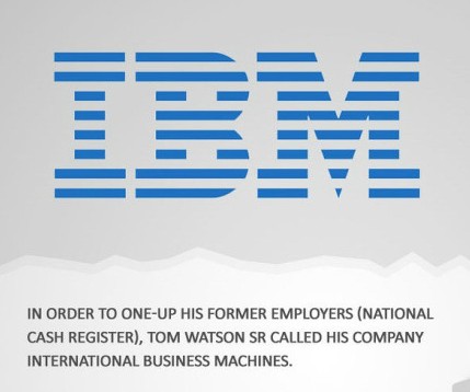 IBM:为了要高出前雇主(全国现金出纳机公司)一筹,汤姆·沃森将他的公司叫做国际商务机器公司(International Business Machines:IBM)。