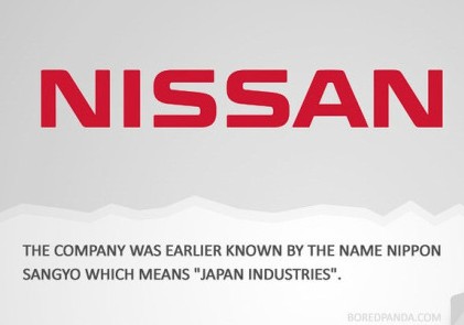 NISSAN(尼桑):最初为人所知的公司名是NIPPONSANGYO,意思是“日本工业”。