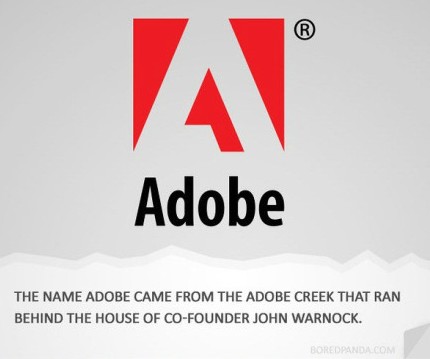 Adobe:ADOBE这个名字来自于流淌过共同创始人John Warnock家后边的ADOBE河。