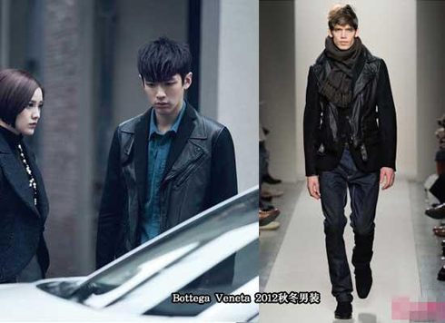 作为时尚女王顾里(郭采洁)的男友柯震东饰演的顾源不穿几件名牌就太说不过去了,不过相比宫铭的高调,顾源的这件来自Bottega Veneta的皮衣不论从品牌和设计来说都显得低调和实用许多。