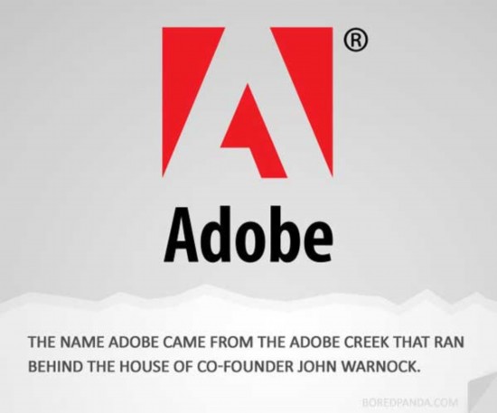 Adobe取自于创办人John Warnock家后面的小溪的名字,还真是纪念“我家门后有小河”的最佳代表作。