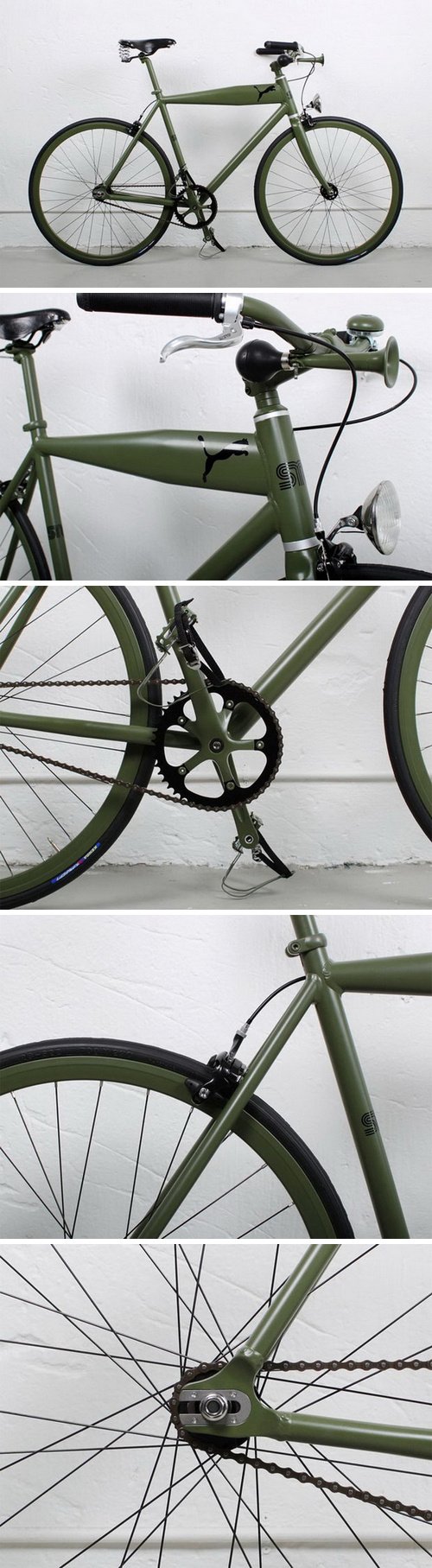 Puma近日与英国size及瑞典Sneakersnstuff两家顶级潮流鞋店合作推出自行车及相关鞋款。整体设计十分具有军事风格,一直以来和Puma维持良好合作关系的Biomega将旗下FUNK车款改装成更具有军事风味的M90式样,墨绿车身搭上Brooks椅垫散发强悍风格,极简风格也流于其中。