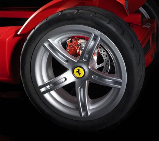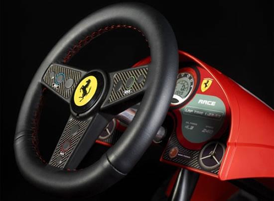看来法拉利的产品已经超越了豪华车的概念,特别是他们居然为孩子提供一辆能够真正进行驾驶的“玩具”汽车。这个著名的跑车制造商刚刚发布了一辆Ferrari FXX Racers pedal Go-Kart。这辆车拥有43cm的加宽超平滑X-treme轮胎,令人吃惊地采用了后轮碟刹,车里有7个啮合齿轮,还装备有电子系统用来对车速和圈时进行监控。