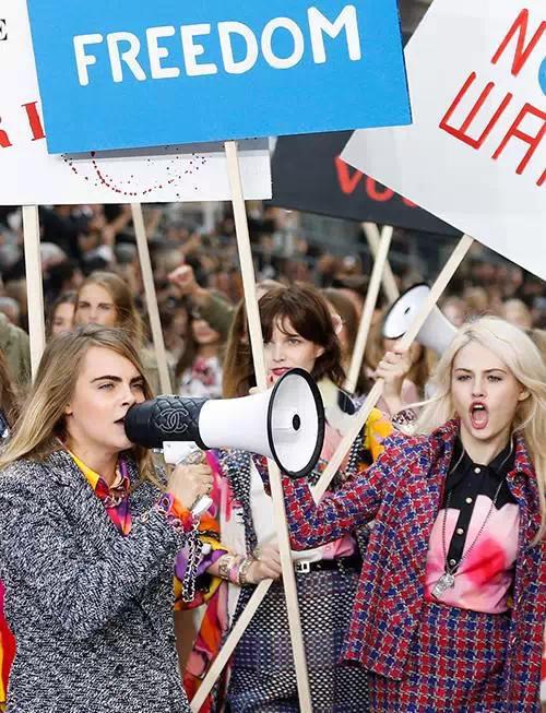 这个春夏,穿些 Spirit 在身上。Chanel 春夏新款涂鸦包袋,爱,女权,自由,一只 Flap Bag足够。猛地一看可能觉得像革命兵的装备,可过于注重材料的时尚界,不就正需要一场精神革命吗。售价$3800(折合人民币23623)。
