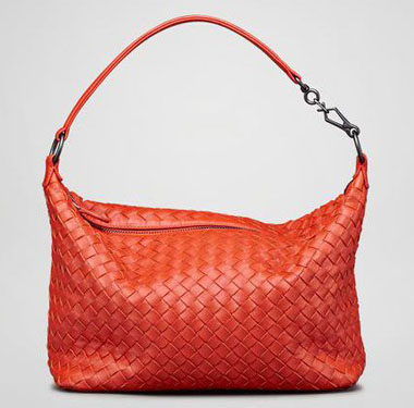 而今天我们要介绍的这款包包并不是限量版,但却是BV家族2011年的新款的包包,它的价格也不像Cabat系列那般昂贵,属于白领女性能够接受的消费层次。同样的编织款式让手袋表面保留了皮革的天然色泽,并突出皮质本身美感。而艳丽的颜色更是BV家族的一大特色,相信会有不少低调优雅的OL一族选择。 Bottega Veneta品牌手袋以软包为主,编织皮革被处理的极为柔软,完全不用担心磨损衣服。除了单纯的编织纹理外,有的手袋还打上镂空的金属铆钉、或预先在局部位置打了结、在纵横格子加了车缝线装饰,甚至还有故意在每个格子切了一道口子,用久了就会翘起来,原来是呼应隐喻吉祥富贵的金鱼,其设计理念十分有趣。