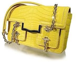 这款有着黄色跳跃颜色的美洲鳄鱼皮制成的LEIBER手提包在春季俘获了很多皮包达人的心,她的外观上有两个口袋,扣锁是18k金做成的,全世界只做了四款。