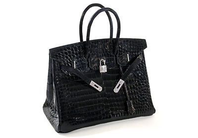 用法国风靡一代的女歌手 Jane Birkin的名字命名的这款约35厘米见方的鳄鱼漆皮手提包,最值得一提的是她的外包锁上镶嵌了9个重达1.86克拉的钻石。