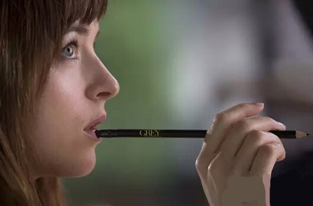 办公室的装潢就不多费口舌了,反正你们可以参照总裁家找到总裁办公室的正确打开方式。我想说的是“连铅笔都是金箔的”!电影里Anna去总裁公司的时候不仅摔了一跤还找不到笔了(这不是少女漫画10年前的相遇设定吗),于是总裁就霸气地给了一只Grey Enterprises品牌冠名的155人民币一只的金箔铅笔(你看,身价高的铅笔还有特写)!!!