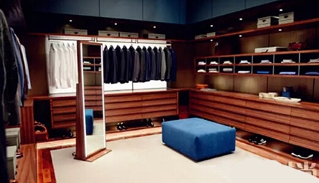 有钱人的品味到底是好还是坏,房子和车子再贵也只能看出一小部分,最重要的还得看穿戴!我们参观一下总裁的衣帽间,一个强迫症的衣帽间。据说本片的造型师的设计灵感来自英国男模David Gandy以及贝克汉姆,关键词包括“干净、经典、年轻、昂贵、性感”。