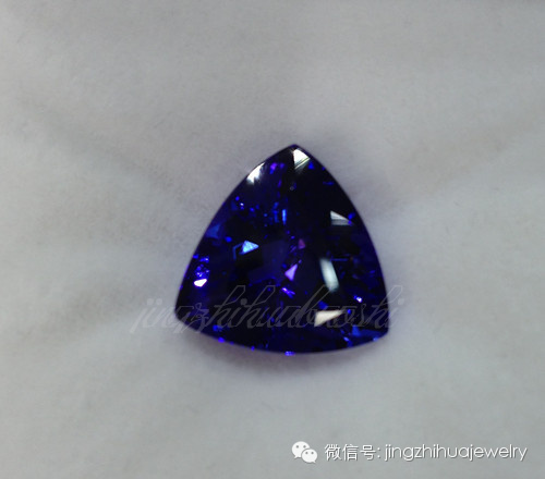 坦桑石,学名黝帘石(Zoisite),是一种含钙、铝的硅酸盐。未经加热处理的黝帘石呈淡红紫色、淡黄绿色和蓝色,加热处理后的黝帘石呈带紫的深蓝色。黝帘石硬度8,密度3.35克/立方厘米,折光率1.690—1.705,双折射率0.009。黝帘石与蓝宝石相似之处是深蓝的颜色,区别在于:黝帘石的靛蓝色鲜艳、均一,见不到色带或生长线;多色性明显,从不同方向观察有紫、绿、蓝三色变化,在某一方向可以见到紫红的色彩。