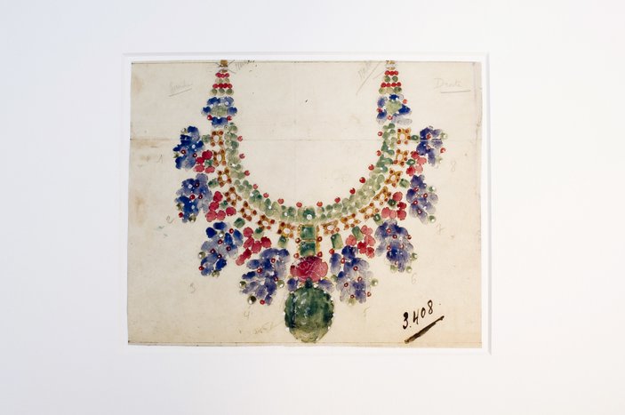 (为印度土邦主自藏珠宝重新打造的项链手绘图)