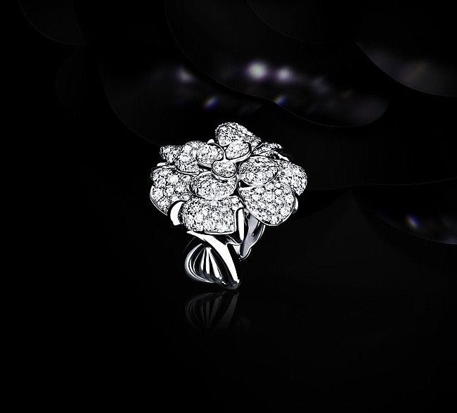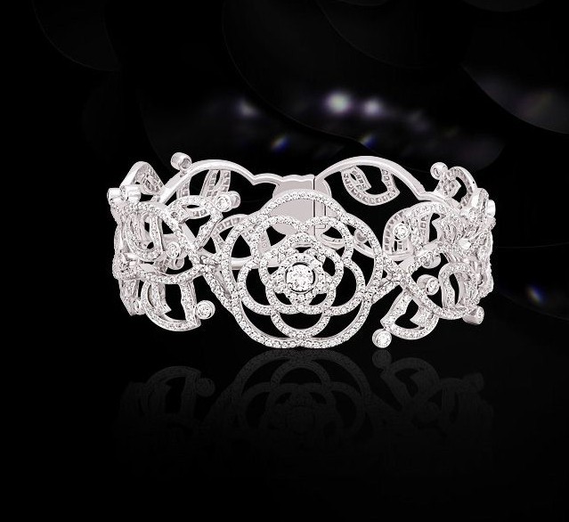 香奈儿(Chanel)高级珠宝全新Camelia Brode系列,镶满钻石的山茶花、蝴蝶结形香奈儿高级珠宝,在黑色背景的衬托下悄然绽放,清冷纯洁的氛围中满溢着奢华光芒。山茶花,在香奈儿(Chanel)珠宝的细腻捕捉下,以珠宝为字,犹如写下一首首赞美诗般,赋予名媛仕女耀眼风采。