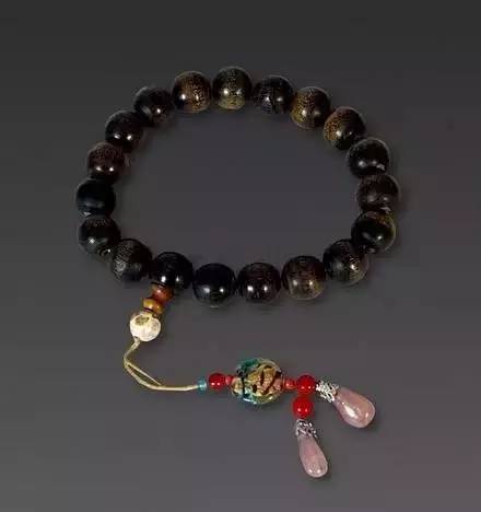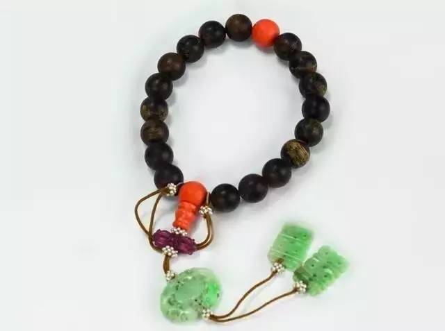 清 沉香木嵌珠手串
