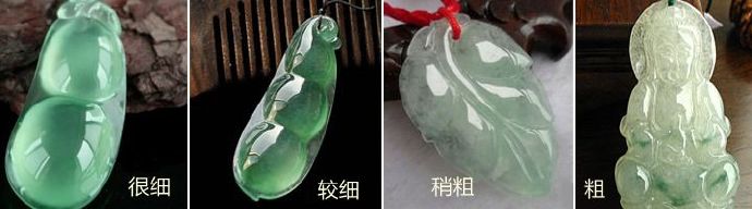 指翡翠的质地——结晶粗细和排列紧密程度。常将结晶非常细腻紧密的称为“种老”,晶体粗、质地疏松的称为“嫩”或“新”。