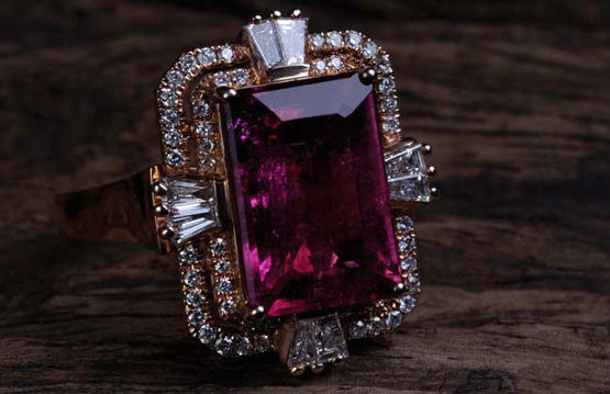 2、红色碧玺:红色碧玺以紫红色和玫瑰红色最佳,但自然界以棕褐、褐红、深红色等产出的较多,色调变化较大,同时比重会随颜色而变化,深红的比重大于粉红色的。
