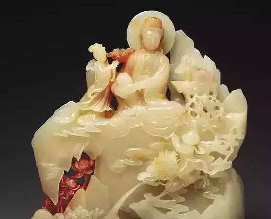 中国寿山石雕经民间雕刻艺人据石材的纹理、色泽、形态等特点,充分发挥石料固有的特色,加工成供观赏的雕刻摆件,使作品的内容与质料溶为一体,展现出理想的寿山石雕艺术特色和高雅的品味。