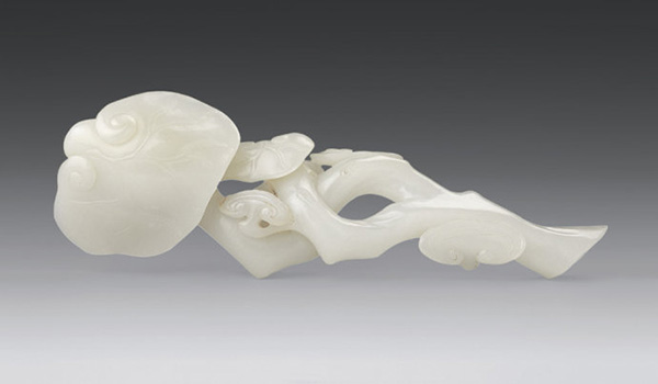 灵芝式如意:这种如意的造型跟灵芝一样。这九鼎如意都是灵芝式如意。
