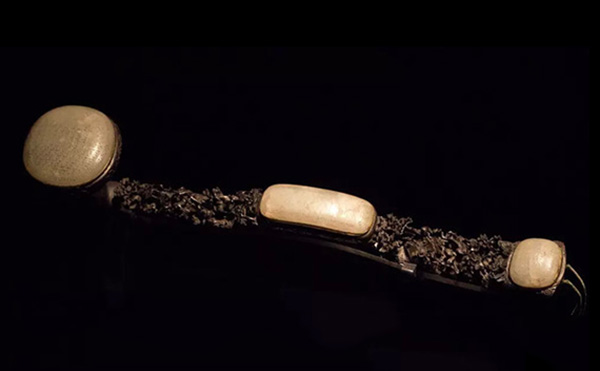 三镶式如意:就是用玉器、玛瑙、碧玺、珊瑚、象牙、翡翠等名贵宝石镶嵌在珍贵的紫檀红木或者铜鎏金上,我们称为三镶式如意。