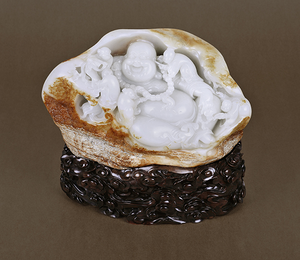 大肚弥勒的现实功用一经被渲染,便更为人们所爱,民间认为只要摸摸他的大肚皮则能消灾避难,祈福平安。再后来他兼有繁衍人类的功能,出现了“五子戏弥勒”的造像,五个可爱的光屁股娃娃在他身上爬上爬下,相互嬉戏,称为“送子弥勒”。对于历来相信多子多福的中国老百姓来说,弥勒就更可爱可敬了。