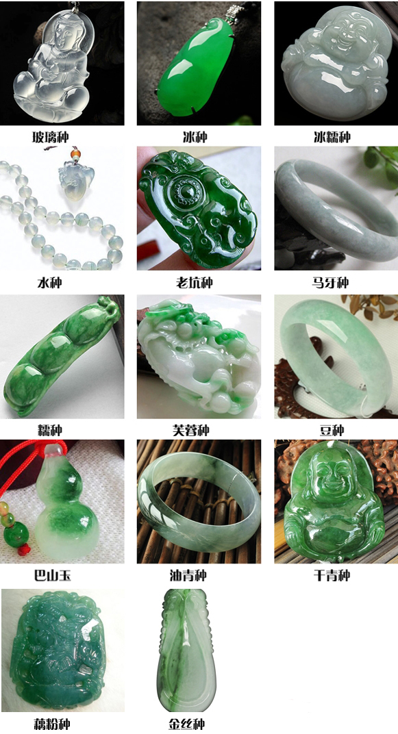 常见品种有老坑种翡翠,冰种翡翠,水种翡翠等十几个品种。