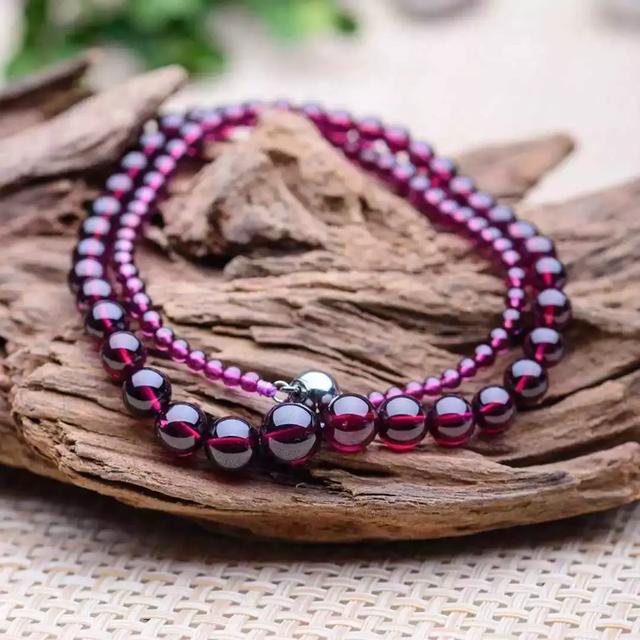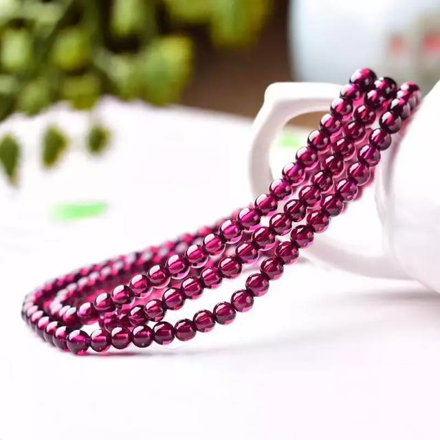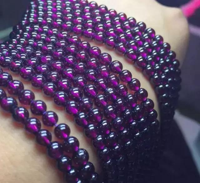 颜色深红是紫牙乌区别于其他种类石榴石的一个重要特征。如今,一条净度、颜色都上乘的紫牙乌珠串已成为很多人最求的目标。