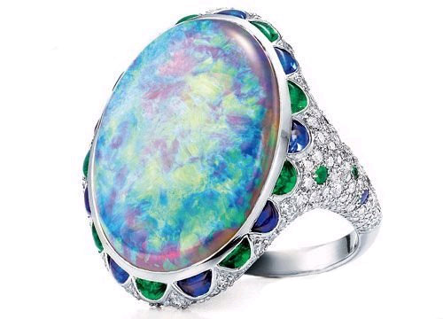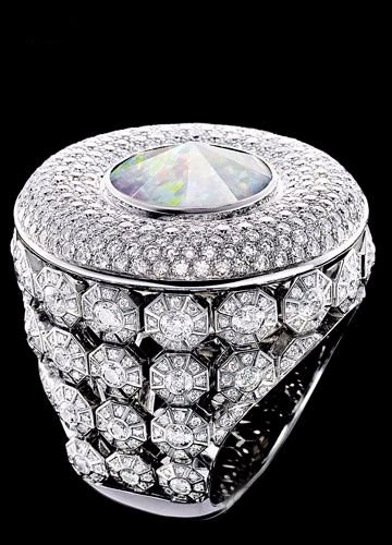 Piaget 18K白金镶嵌钻石及贵果冻欧泊戒指