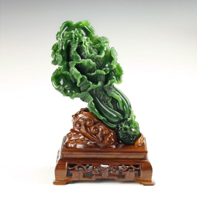 我们最后奉上的这件白菜摆件,就是以翠青料雕琢而成。