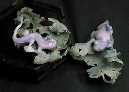 镂雕的材料必须质细性纯,尤其是镂空部分,更不应有裂纹和高密度的砂格,否则容易造成断裂。镂雕使用的工具,除一般雕刻刀具外,还需要特制的长臂凿、扒剔刀、铲底刀、钩型刀,以及小锯刺等专用刀具。因为镂雕内部景物受空间的很大限制,只能依靠扩大入刀方向的办法来克服操作上的困难,所以镂雕景物的设计要求最好是多面透空。