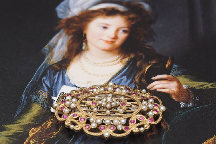 奥地利作家Stefan Zweig 曾经在他的第一部小说《艾利卡埃·瓦尔德之恋》中写道:胸针之于女性,象征大过于装饰,因为它是所有饰物中唯一不和女性身体发生接触的特例。而即便高贵如女皇,在佩戴胸针时也必须谦卑俯首,那时往往会有一阵微微的眩晕,因为,你看到的是你心上的自己。