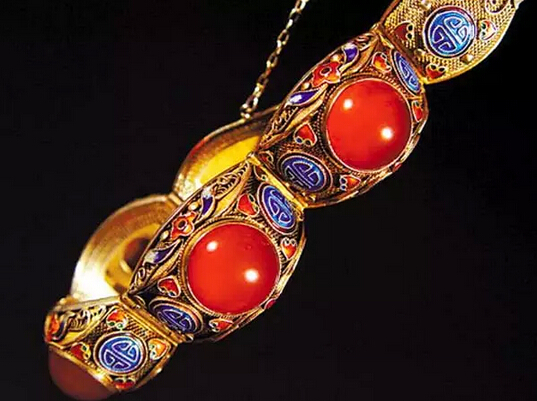 景泰蓝镶珊瑚古董手镯