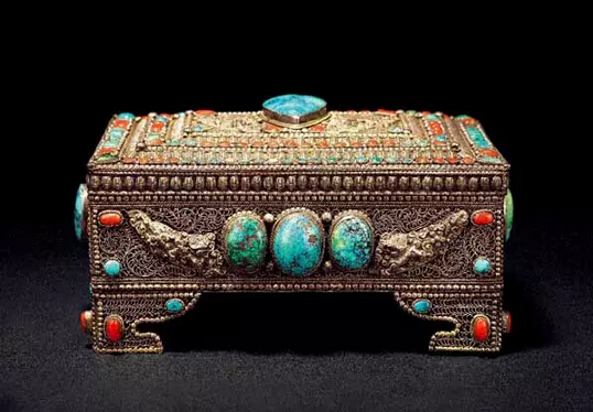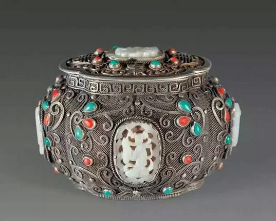 清中期,银嵌宝石首饰盒
