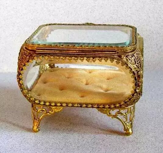 金镶玻璃软垫古董首饰盒