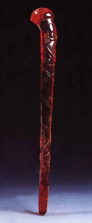 明花蝶纹玉耳挖簪 明天启龙纹琥珀簪