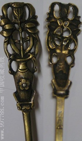 明万历累丝嵌宝龙纹金桃心簪 清鎏金老银簪