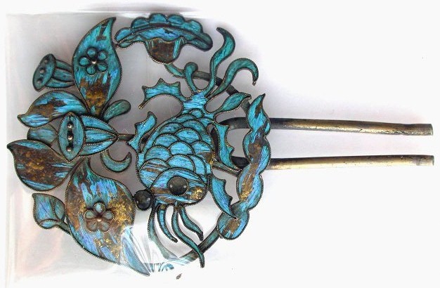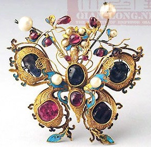 清点翠嵌宝石蝠蝶花卉钿