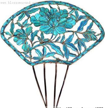 钿花: 起源于南朝宋,有红、绿、黄三种颜,以红色为最多,以金、银制成花形,蔽于发上,是唐代比较流行的一种发饰。形状除梅花状外,还有各式小鸟、小鱼、小鸭等,十分美妙新颖。用金,银,玉,贝等做成的花朵状装饰品。明宋应星《天工开物.玉》:“凡玉器琢余碎,取入钿花用。”钟广言注:“钿花:用贵重物品做成花朵状的装饰品,如金钿,螺钿,宝钿,翠钿,玉钿等。”