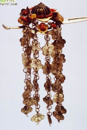 簪(zān) 由笄发展而成,可用金、玉、兽骨、玳瑁等制成,后来专指妇女绾髻的首饰。阴商时期的古人就开始用簪了,簪的用途有二:一为安发,二为固冠。簪在古代是男女通用的,杜甫有诗“白头搔更短,浑欲不胜簪”。皇帝在节日里赐给大臣的礼物通常是簪。古代时规定罪犯不许带簪,就是贵为后妃如有过失,也要退簪,因为簪还象征着尊严。