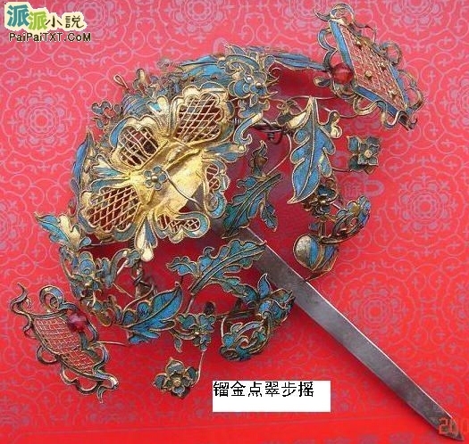 步摇: 是古代女子的重要首饰之一,在笄、簪上加以饰物而来。因为行走时随着脚步的移动,那些垂挂着的珠玉便会不停的摇动,固而称为“步摇”。步摇是始见于汉代宫廷后妃的礼制首饰。汉代以后,步摇逐渐流行于民间,成为妇女喜爱的首饰之一。“头安金步摇,耳系明月挡”就是这一写照。白居易在《长恨歌》中用“云鬓花颜金步摇,芙蓉帐暖度春宵”来形容杨贵妃。