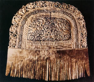 步摇有多种形状,如枝叶形、花鸟兽形,还有牌饰制成山形的。它还不仅仅是女子的专有,男子也有用的,有时还将它缀在冠上,作为部队的标志,叫“步摇冠”。