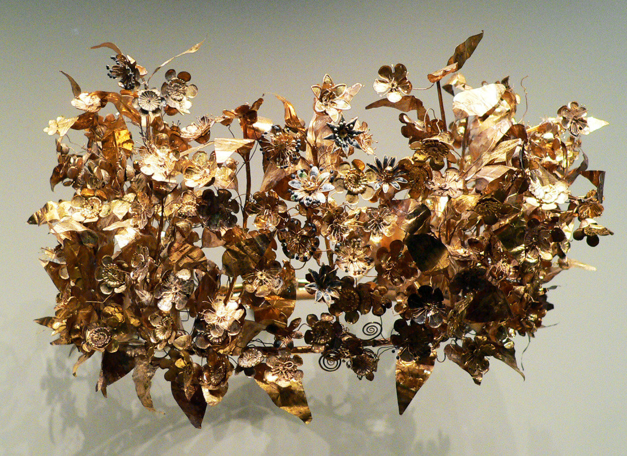 “也许我的爱会凋零,但我的花不会枯萎。”来自古希腊时期(公元前350-300年),盛开的桃金娘花环。希腊人在阿芙罗狄蒂(爱与美的女神)的崇拜和信仰中保留了对桃金娘的尊敬。以月桂叶、桃金娘的花叶编成花环,常青的树叶、优美的花朵以及令人愉悦的芳香,正象征着永恒的美丽。 现藏塞萨洛尼基考古博物馆。