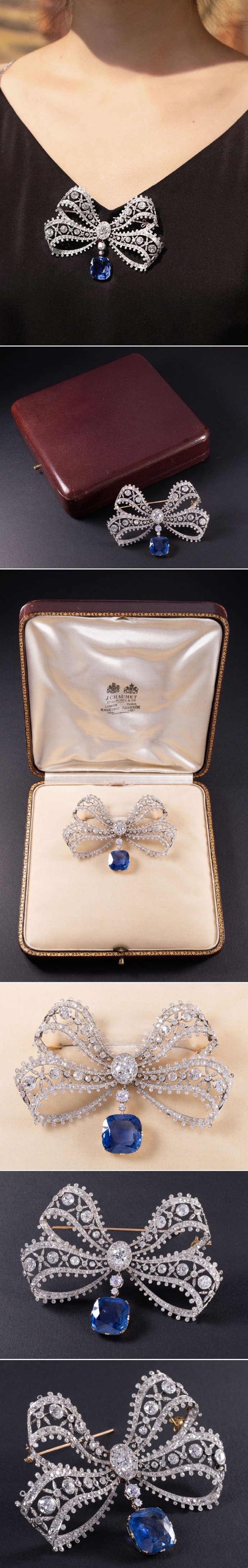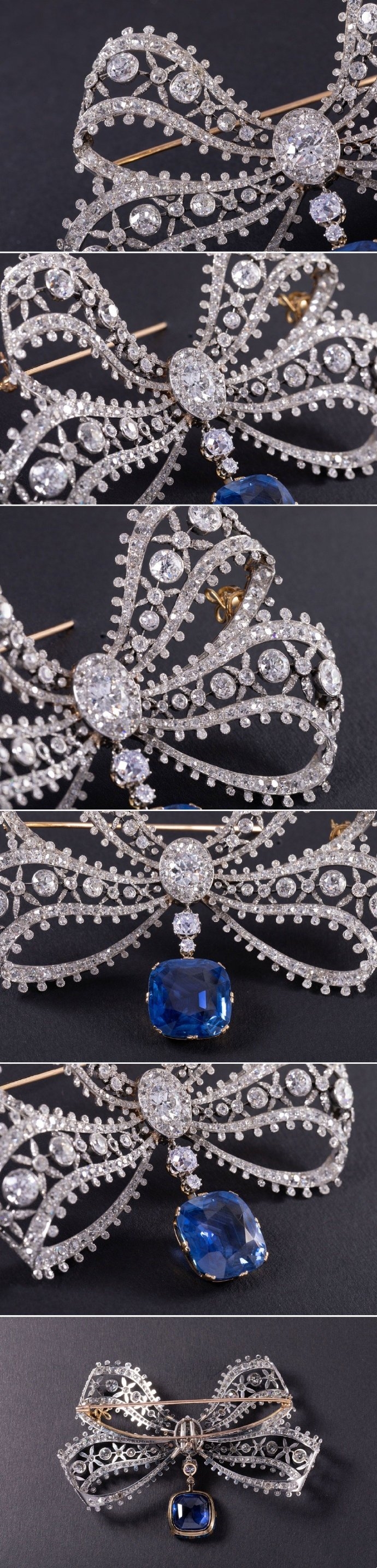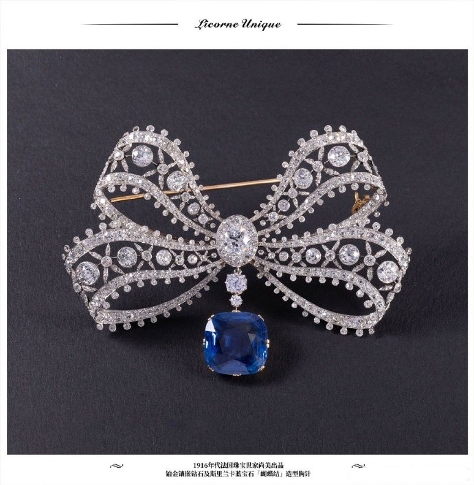如此一枚独具历史韵味的蝴蝶结珠宝,不仅中央蓝宝浓郁上乘,更展现出独特美学品味,细节间满满的时代感呀,太精彩了!