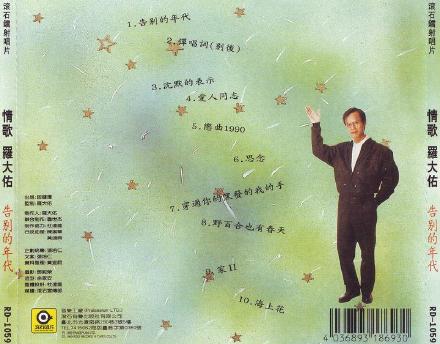 1989第一张电影音乐专辑《衣锦还乡》发行。罗大佑情歌选辑《闪亮的日子》(1974-1981作品),《告别的年代》(1982-1989作品)发行。《爱人同志》在港发行。
