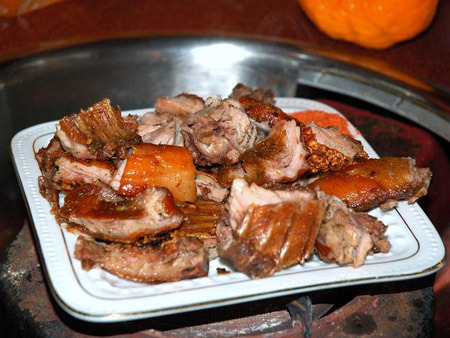 双龙桥美食是昆明著名的狗肉一条街,老昆明都知道双龙桥。双龙桥的狗肉以狗三爷的最出名。因为狗三爷的名气太大了,一条不长的街上,10家有8家取的名字与“三爷”有关,三爷狗肉大刀王、唐三爷、狗三爷等等,近年来,除了打三爷牌外,又增加了正宗蒙自沙锅狗肉、烤狗排、谭家营太胖子哥俩狗肉、建水烧烤狗肉等一些新的店家,狗肉一条街的10多家狗肉摊上,虽然是宵夜摊,但是在晚上7点就可以吃到狗肉了。价格上几乎家家一样,狗肉60元一斤,狗肉米线3元一碗。狗肉称好以后,可以要求做成凉片或者清汤,一些摊上还有烤狗排、烤狗脸、烤狗尾、烤狗鞭等许多吃法。