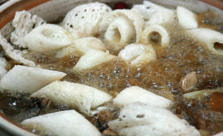 重庆小天鹅关上店同北大门店、西山店一样,他们推出了具有滋补作用的药膳系列,是由甲鱼、龟、乌鸡、乳鸽、蛇及名贵药材熬制而成,品种有乌鸡甲鱼汤、天麻乳鸽汤、龟蛇汤、虫草鸭子汤、虫草甲鱼汤等,客人在吃火锅前先喝一碗具有滋补作用的药膳汤,既保护肠胃,又让人更有食欲。它改变了重庆火锅过去红油牛油、大辣大成的单一风格。