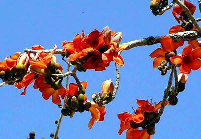 云南楚雄的广通、元谋一带盛产攀枝花,当地的彝族同胞将攀枝花摘下凉干,待吃时用水浸泡。制作时,取一枝腊猪蹄子,用松毛火将未刮干净的毛烧燎干净,刮洗干净。用一口祥云土锅放在栗炭火上慢慢炖,这时整条巷子都弥漫了扑鼻的香气。将猪蹄炖七、八成熟后,将洗干净的攀枝花放进同煮,在那乳白的猪蹄子汁液里,配上红艳的攀枝花,那种乳白与红艳相融合在一起,像是一幅绝美的静物画。