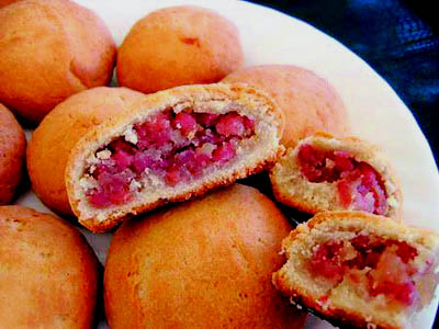 在云南,最以“花味、滇味”为特色的莫过于玫瑰鲜花饼了,这是一款以云南特有的食用玫瑰花入料的酥饼,晚清时的《燕京岁时录》记载:“四月以玫瑰花为之者,谓之玫瑰饼。以藤萝花为之者,谓之藤萝饼。皆应时之食物也。”鲜花饼曾为宫廷御点,并深得乾隆皇帝喜爱,并获得其钦点:“以后祭神点心,用玫瑰花饼不必再奏请即可。”饼里的馅料是玫瑰花,莹润欲滴,紫红如霞,新鲜得像刚刚从枝头采摘下来的一般,叫人好不垂涎。鲜花饼最美美在花馅里,但见得花瓣残碎处,夹杂着丝丝交错的脉络,有温和的香气直钻口舌,有逼人的娇艳缠绕在眉眼,嚼在唇齿间,有柔韧劲。玫瑰含有丰富的维生素以及单宁酸,能改善内分泌失调,疏肝理气解郁,可适用于肝气郁结,促进血液循环,缓和肠胃神经,起到防皱纹、防冻伤、养颜美容的功效。