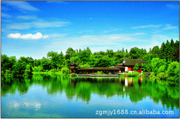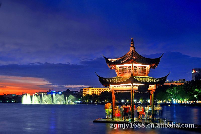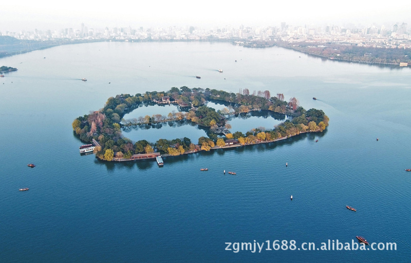 中秋佳节“天上月一轮,湖中影成三”的绮丽景色。被誉为“西湖第一胜境”,是江南水上庭院艺术的代表作。