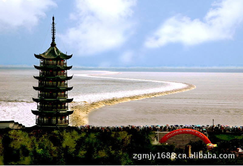 【钱塘江景区】农历八月十八大潮来临之际游赏为最佳。【天下奇观钱塘潮】“宝塔一线潮”的雄奇壮丽景象;