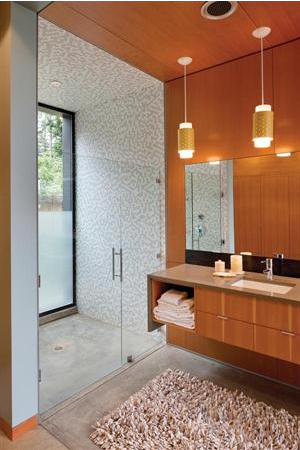 受人欢迎的温泉度假已促使具有休闲功能化、外观流畅型浴室的产生。能够把泡温泉的氛围带入家庭的一个最佳解决方案就是建造防水淋浴室:用玻璃窗隔出一间淋浴室,其余部分仍旧属于浴室,地面倾斜几度用以建立最佳的排水系统。我们预测防水淋浴室的设计将具有较为长久的生命力。这种设计是一项为迅速老龄化的美国人口所提供的具有时尚和美观的通用设计的切实可行的方案。