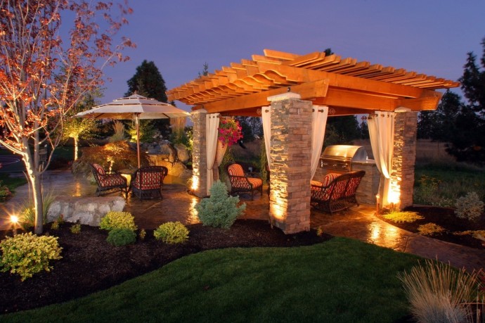 户外也可以安装吊灯和落地灯。